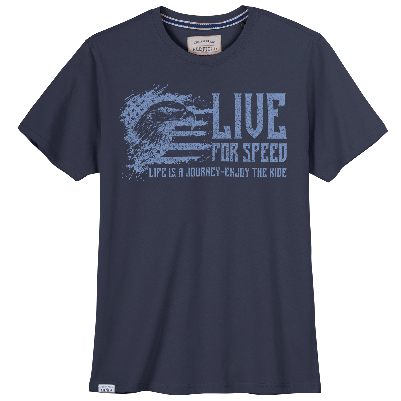 Redfield T-Shirt denimblau mit stylischem Frontdruck - Modell: Live for Speed