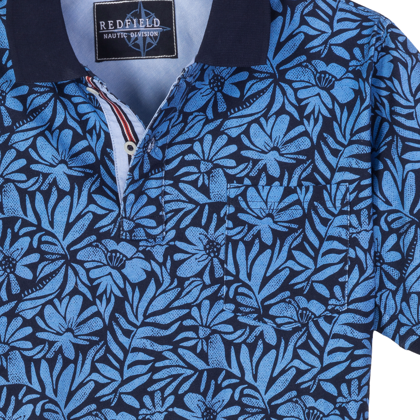 Dieses Poloshirt von Redfield in großen Größen überzeugt durch sein trendiges florales Allovermuster und hochwertige Verarbeitung aus reiner Baumwolle. Der bequeme Schnitt sorgt für ein angenehmes Tragen, während kleine, verstärkte Seitenschlitze am Saum für zusätzlichen Komfort und Bewegungsfreiheit sorgen. Polokragen und Ärmelbündchen aus elastischer Rippqualität verleihen dem Polo einen klassischen Look und machen es zu einem vielseitigen Begleiter für Freizeit und Alltag.