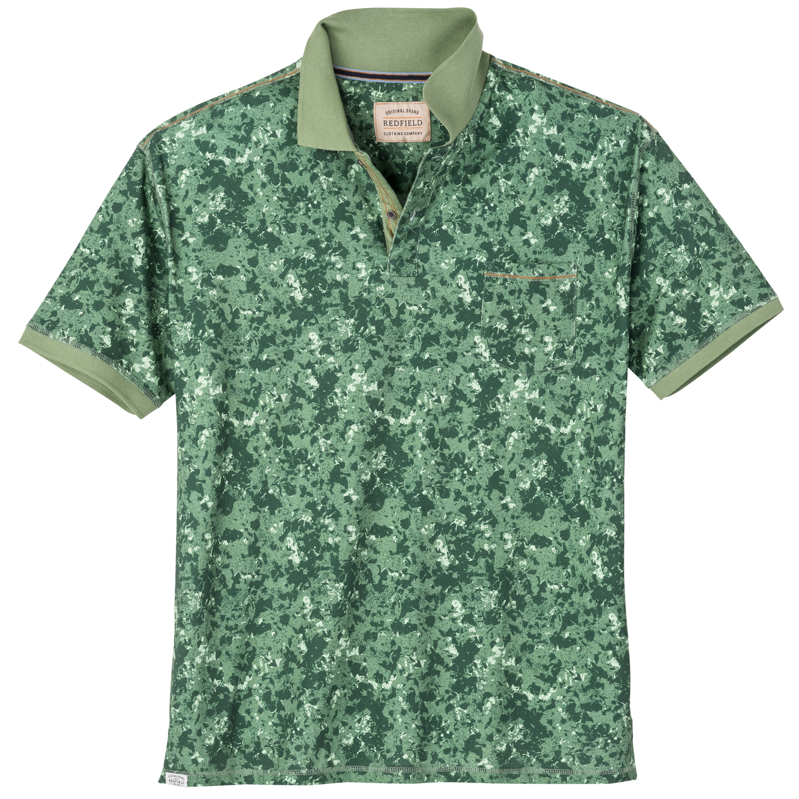 Dieses Poloshirt in Übergrößen von Redfield verbindet modischen Stil mit hohem Tragekomfort. Das trendige Alloverprint verleiht dem Polo eine moderne, sommerlich-leichte Ausstrahlung. Dank der reinen, weichen Baumwolle liegt es angenehm auf der Haut und sorgt für ein rundum komfortables Tragegefühl. Der bequeme Schnitt mit kleinen, verstärkten Seitenschlitzen am Saum biete optimale Bewegungsfreiheit, während der Polokragen und Ärmelbündchen in elastischer Rippqualität sportliche Akzente setzten. Eine praktische Brusttasche ergänzt das Design auf stilvolle Weise.