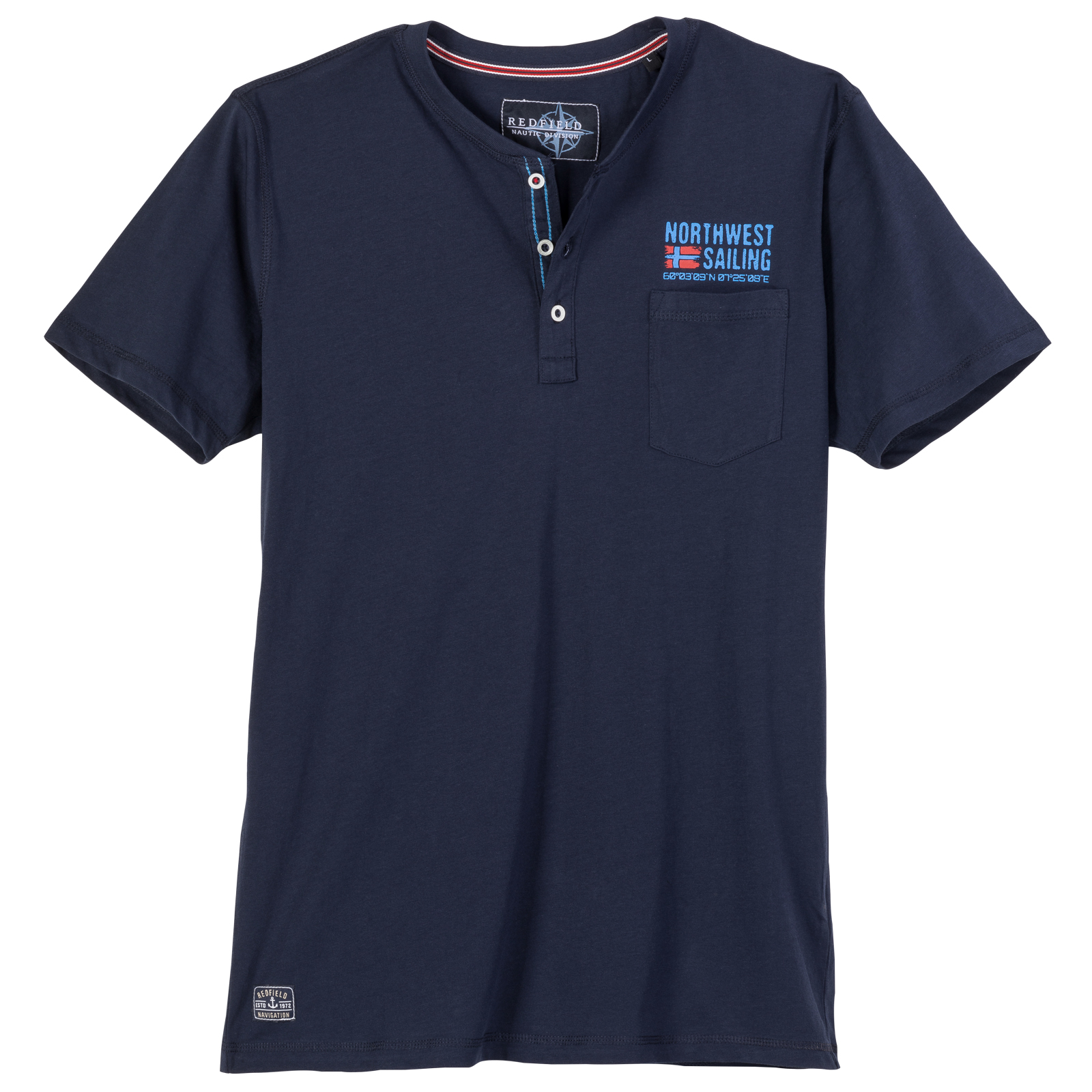 Redfield Henley T-Shirt navy mit Brusttasche - Modell: Northwest Sailing