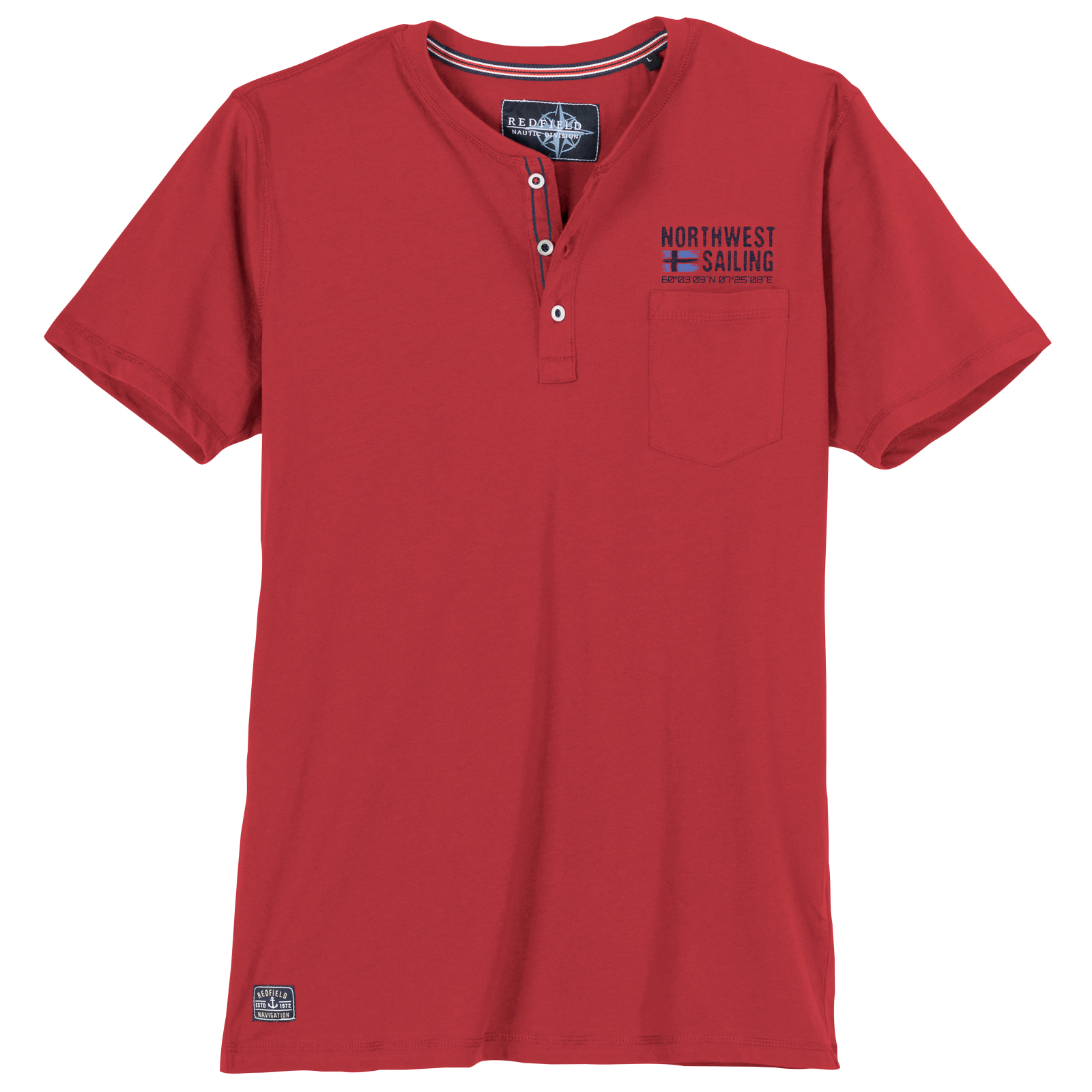 Redfield Henley T-Shirt rot mit Brusttasche - Modell: Northwest Sailing