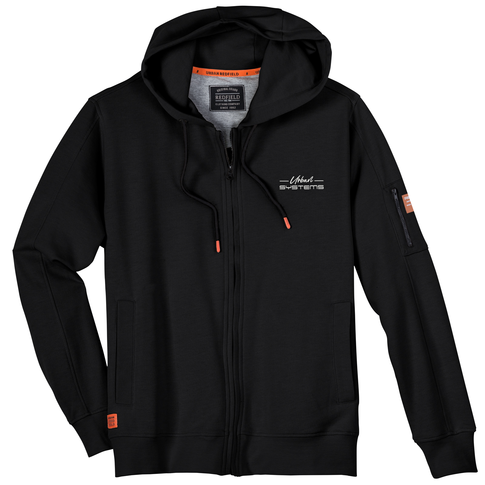 Diese Redfield Sweatjacke in Übergrößen überzeugt mit einem kleinen Brustprint und einer markanten Zip-Tasche am rechten Oberarm! Für Tragekomfort garantieren der weiche Baumwollmix mit Frottee-Innenseite und der bequeme Schnitt. Die Jacke ist mit Frontreißverschluss, Kapuze mit Kordelzug und zwei seitliche Eingrifftaschen ausgestattet. Rippbündchen an Saum und Ärmeln machen den Look komplett.