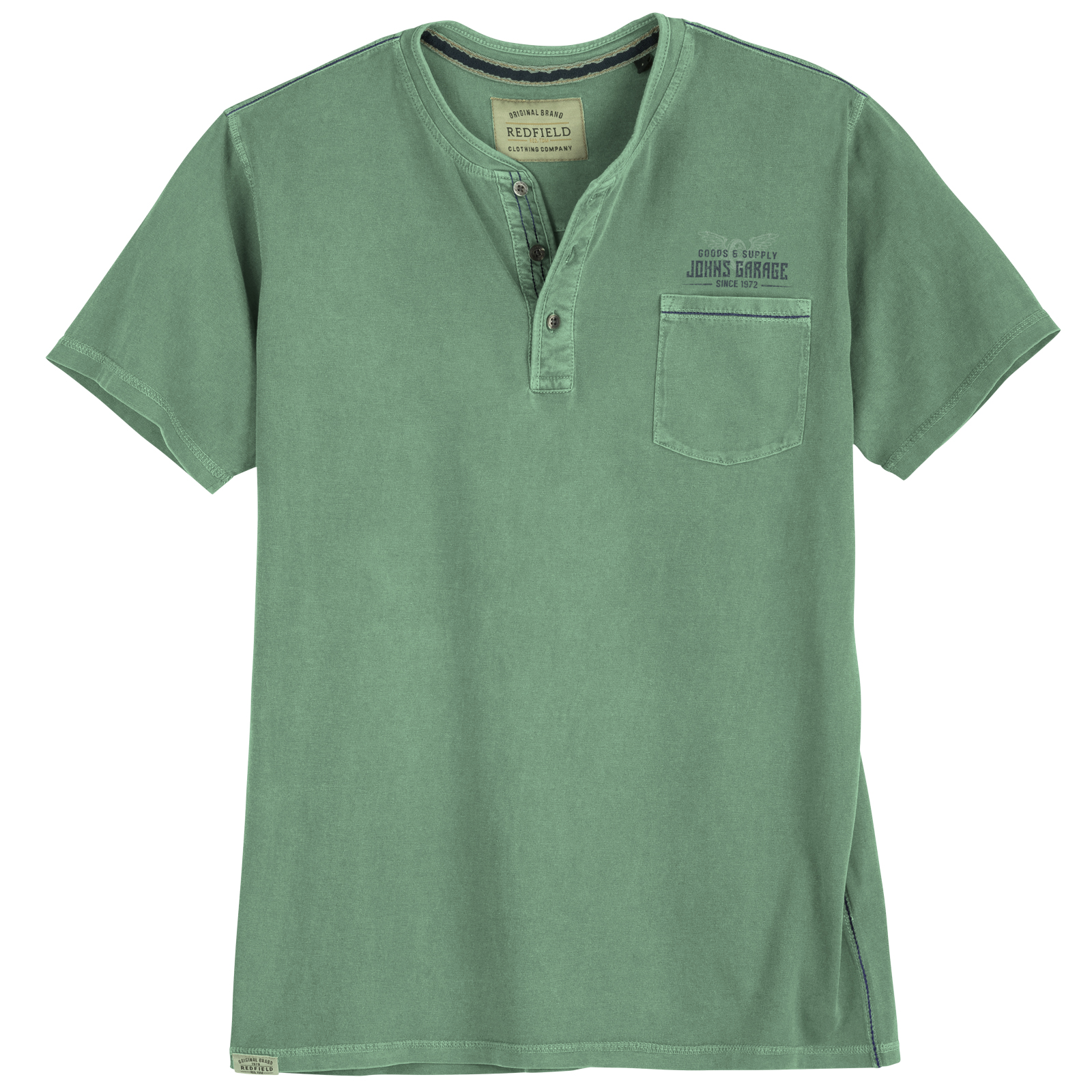 Redfield Henley T-Shirt salbeigrün used mit Brusttasche - Modell: John’s Garage