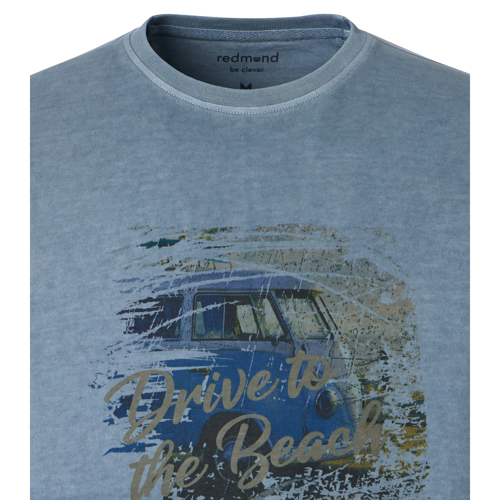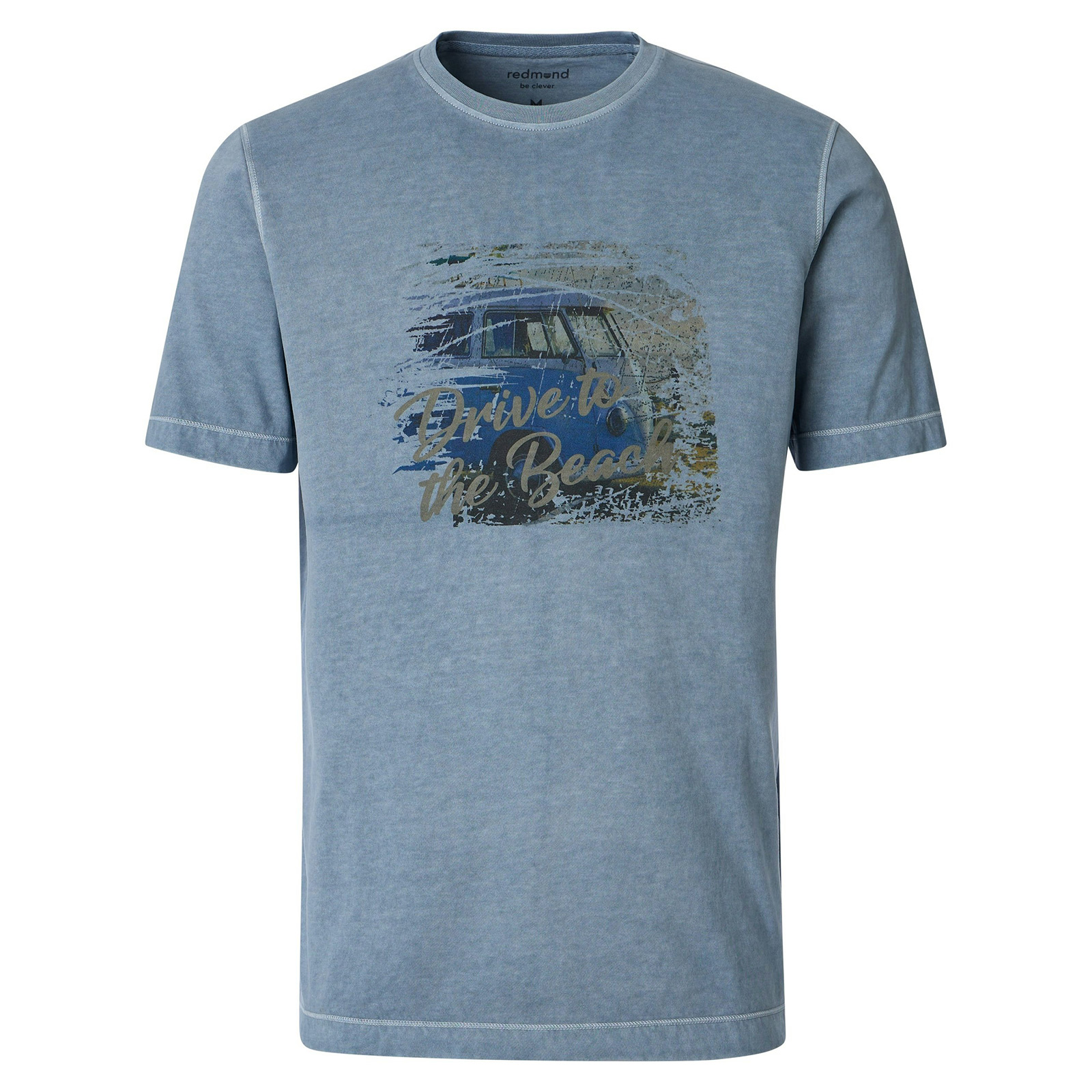 Dieses große Größen T-Shirt der Marke Redmond beeindruckt durch seinen coolen Used-Look! Die reine Baumwoll-Qualität, der bequeme Schnitt und der elastische Rundhalsausschnitt garantieren besten Tragekomfort. Der modische Frontprint rundet das Ganze ab.