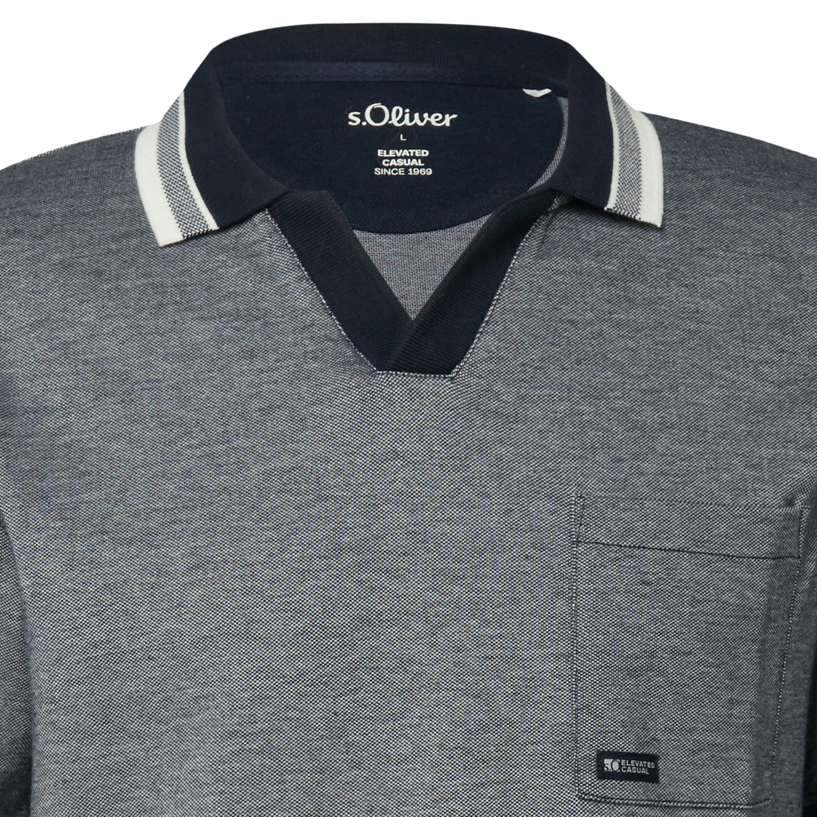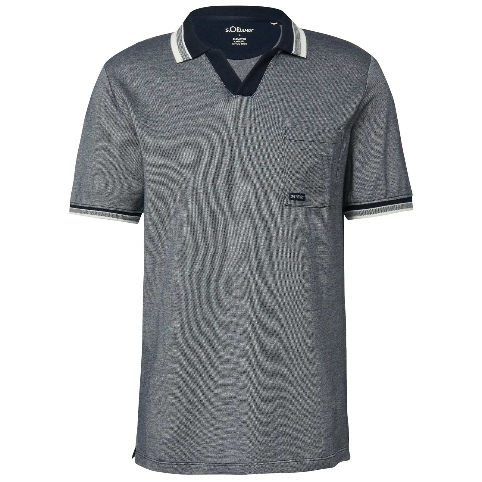 Dieses Übergrößen Polo von s.Oliver überzeugt mit gepflegter Casual-Optik und angenehmem Tragekomfort im Alltag. Die fein strukturierte Piqué-Qualität liegt angenehm auf der Haut und sorgt für ein luftiges, komfortables Gefühl. Der moderne V-Ausschnitt-Polokragen ohne Knopfleiste mit Kontrastdetails setzt einen zeitgemäßen Akzent, während elastische Ärmelabschlüsse und verstärkte Seitenschlitze die Bewegungsfreiheit unterstützen. Die aufgesetzte Brusttasche mit kleinem Logo-Detail rundet den Look harmonisch ab. Ein vielseitiges Basic für gepflegte Freizeit-Outfits - ideal kombinierbar mit Jeans, Chino oder Shorts.