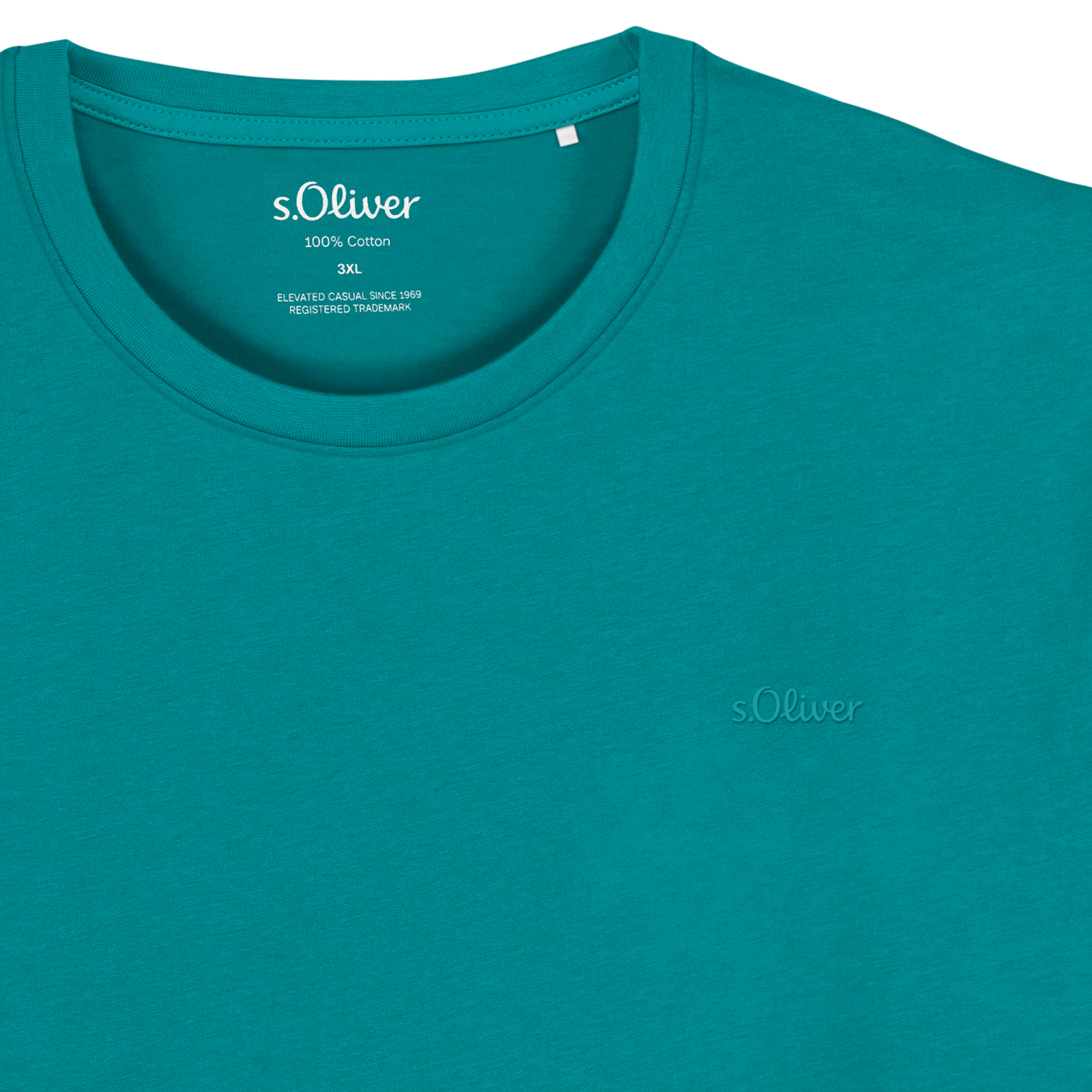 s.Oliver Basic T-Shirt rauchblau mit dezentem Logoprint
