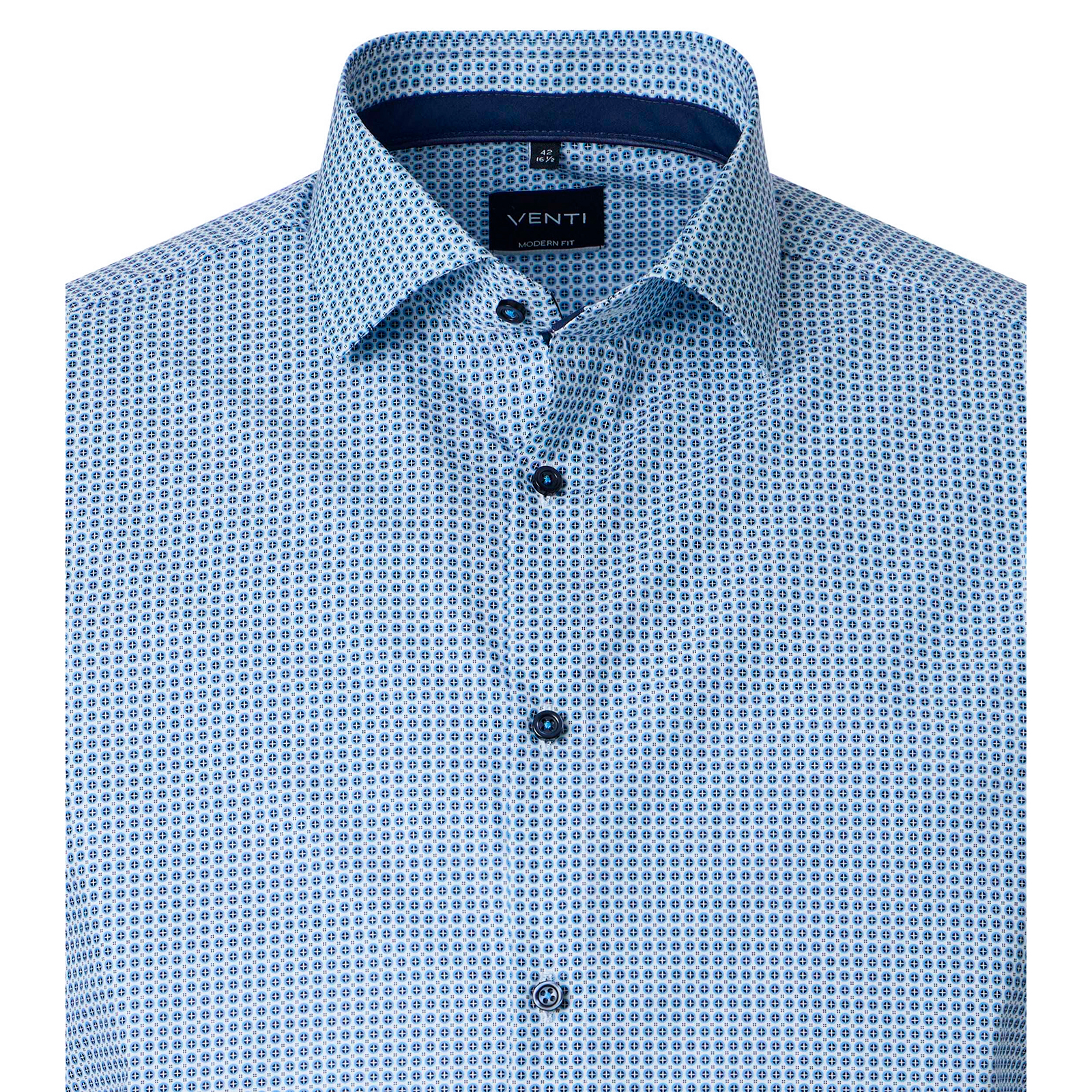 Mit diesem gemusterten Kurzarmhemd in großen Größen von Venti setzen Sie auf Frisch und erstklassigen Tragekomfort! Das stilvolle Allovermuster verleiht dem Hemd eine moderne Ausstrahlung und macht es zum vielseitigen Begleiter für Freizeit und gepflegte Alltagslooks. Der komfortable Comfort Fit Schnitt bietet großzügige Bewegungsfreiheit, während die hochwertige Baumwollqualität für ein angenehmes Tragegefühl sorgt. Abgerundet wird die Ausstattung durch einen klassischen Kentkragen und einer praktischen Brusttasche.