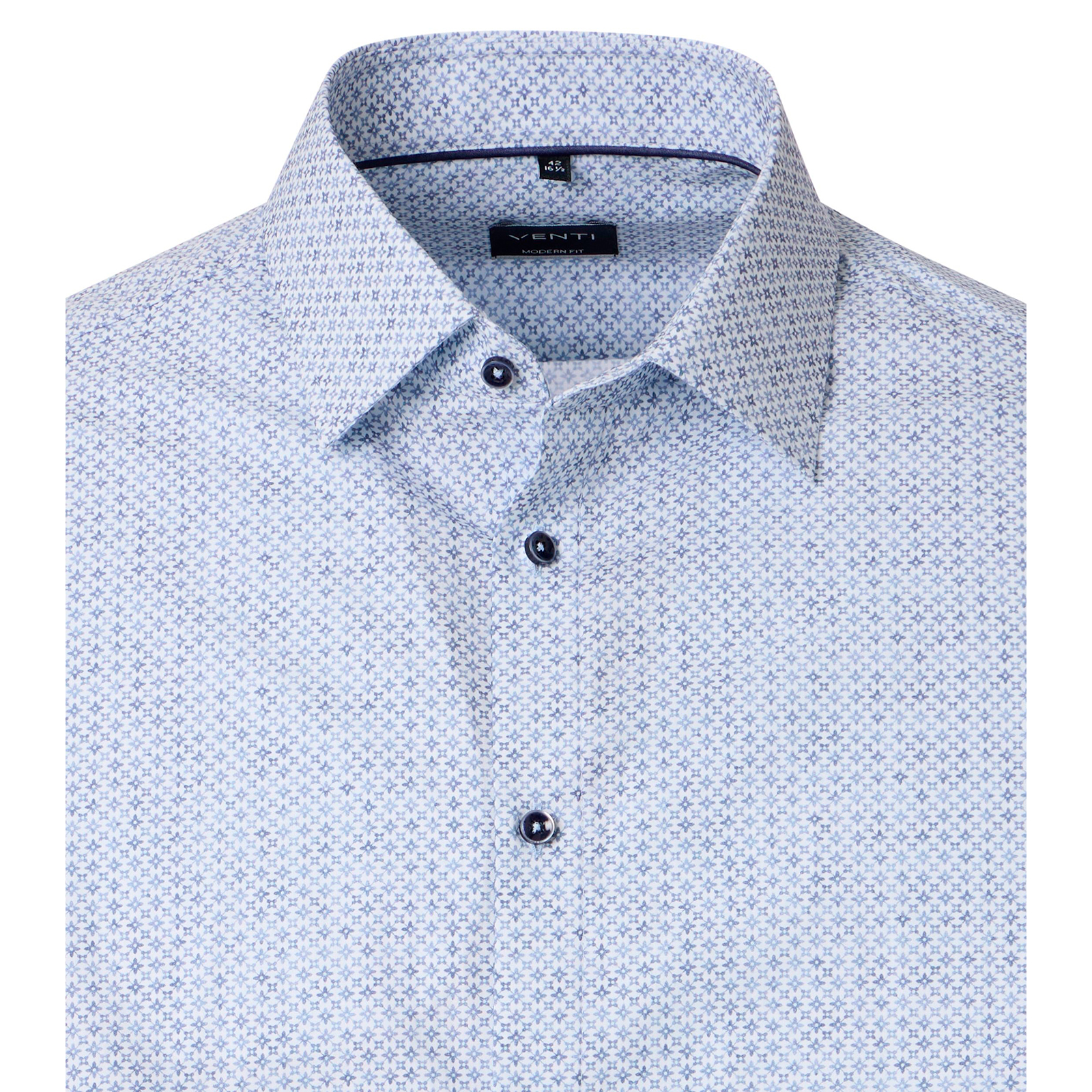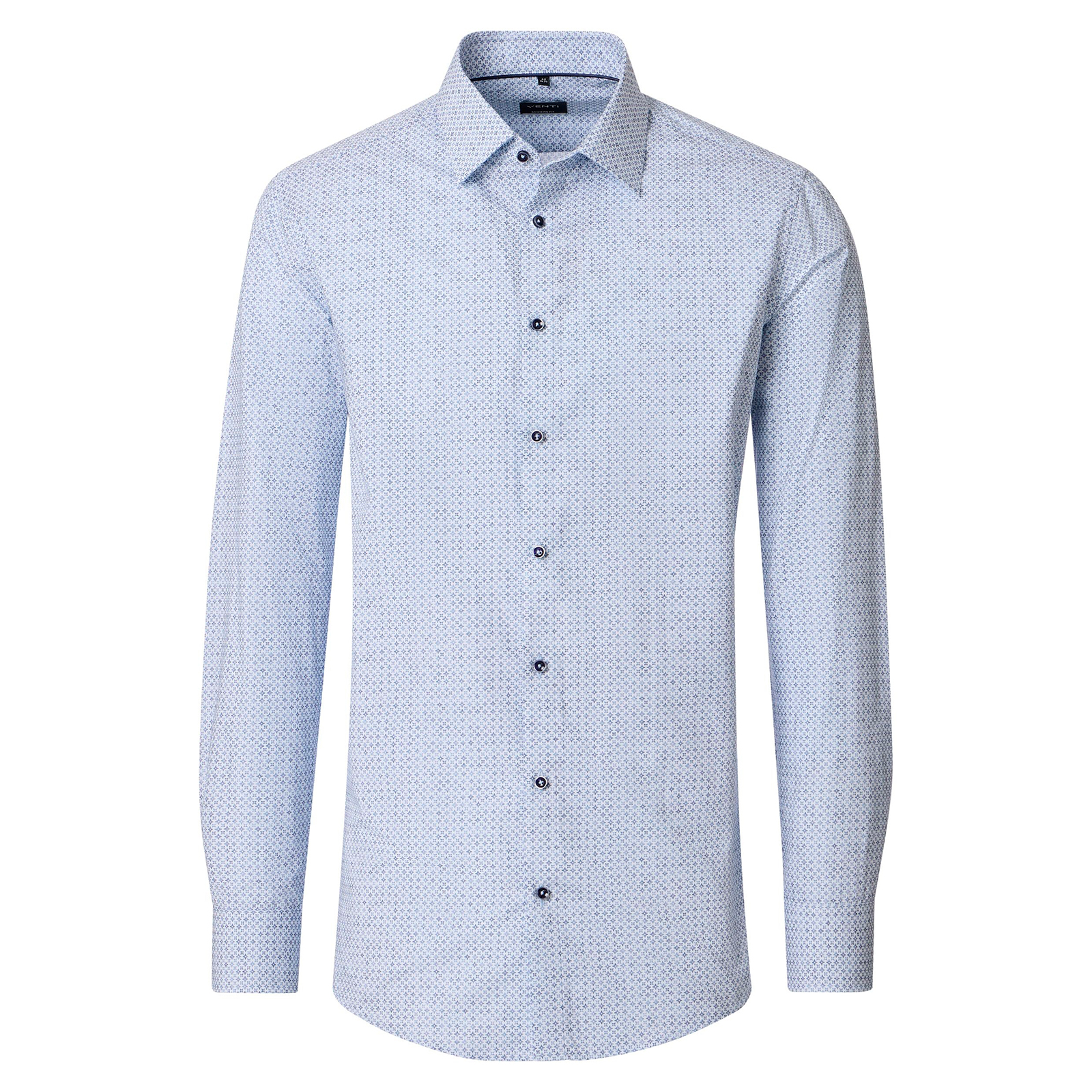 Dieses Langarmhemd von Venti in großen Größen überzeugt mit einem modernem Alloverprint sowie einem angenehm weichen Tragegefühl. Gefertigt aus reiner Baumwolle, bietet es pflegeleichte Eigenschaften und hohen Komfort. Der bequeme Comfort Fit sorgt für ausreichend Bewegungsfreiheit. Klassische Ausstattungsdetails wie der Kentkragen und weitenverstellbare Manschetten machen dieses Hemd zu einem vielseitigen Begleiter für Büro und Freizeit.