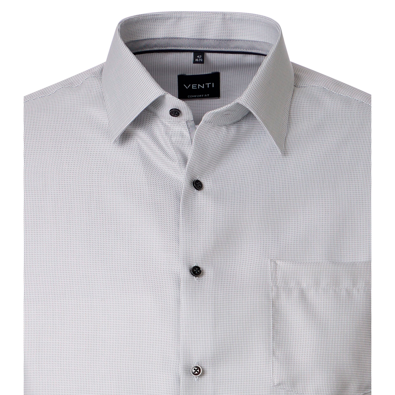 Mit seinem dezenten Strukturmuster präsentiert sich dieses Übergrößen Langarmhemd von Venti als stilvoller und zugleich komfortabler Begleiter! Der großzügige Comfort-Fit-Schnitt sorgt für eine bequeme Passform und ausreichend Bewegungsfreiheit, während die reine, bügelfreie Baumwolle angenehm auf der Haut liegt. Ausgestattet ist das Hemd mit einem klassischem Kentkragen, praktischer Brusttasche und weitenverstellbaren Manschetten.