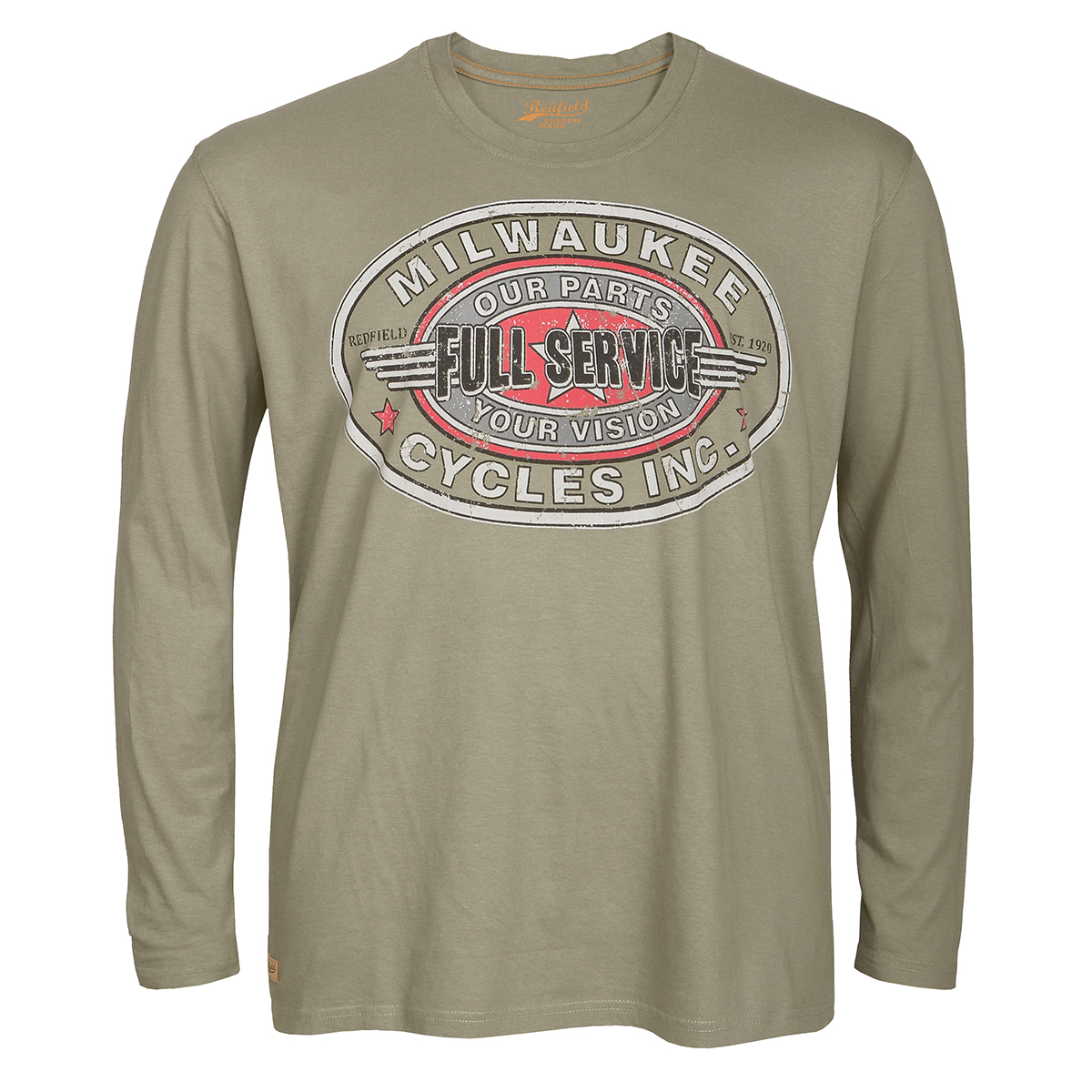 Redfield Langarmshirt mit Vintage Print in light khaki- Modell: FULL SERVICE